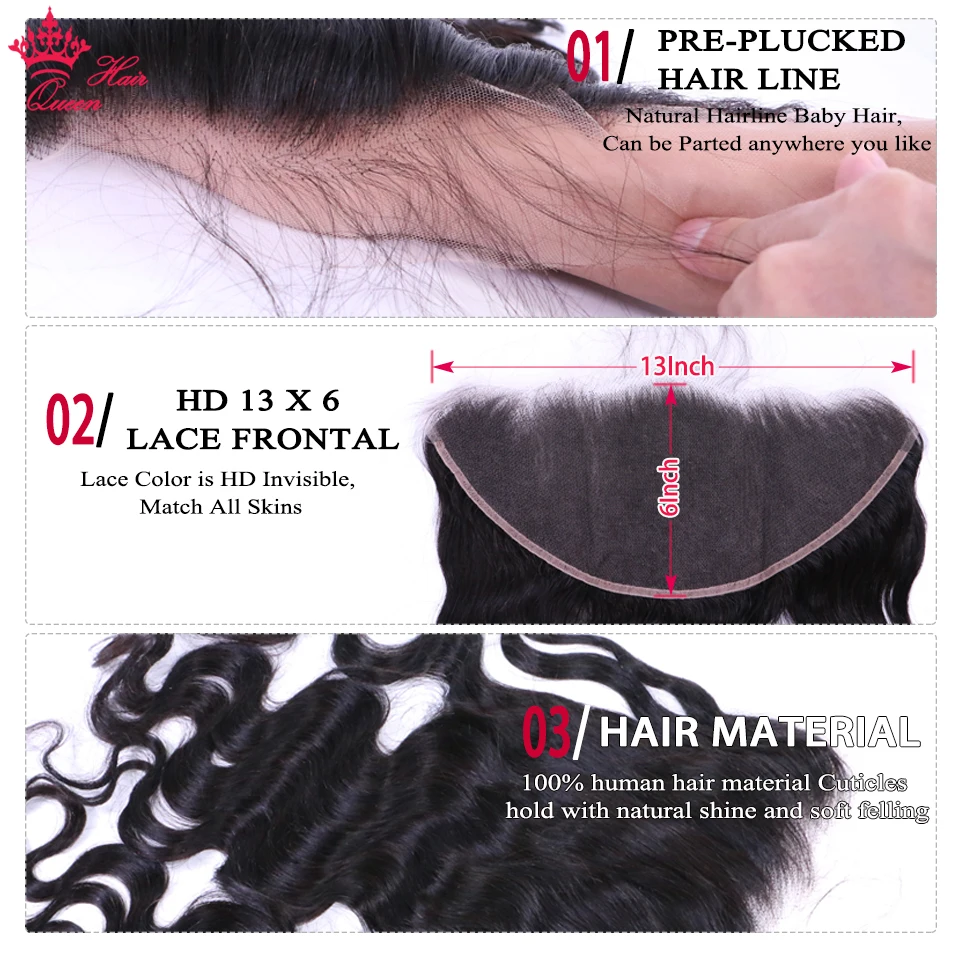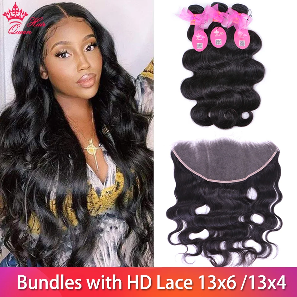 HD 13x6 Frontal with Bundles 100% Human Hair Brazilian Body Wave Bundles with 13x6 13x4 Lace Closure Frontal Queen Hair Products