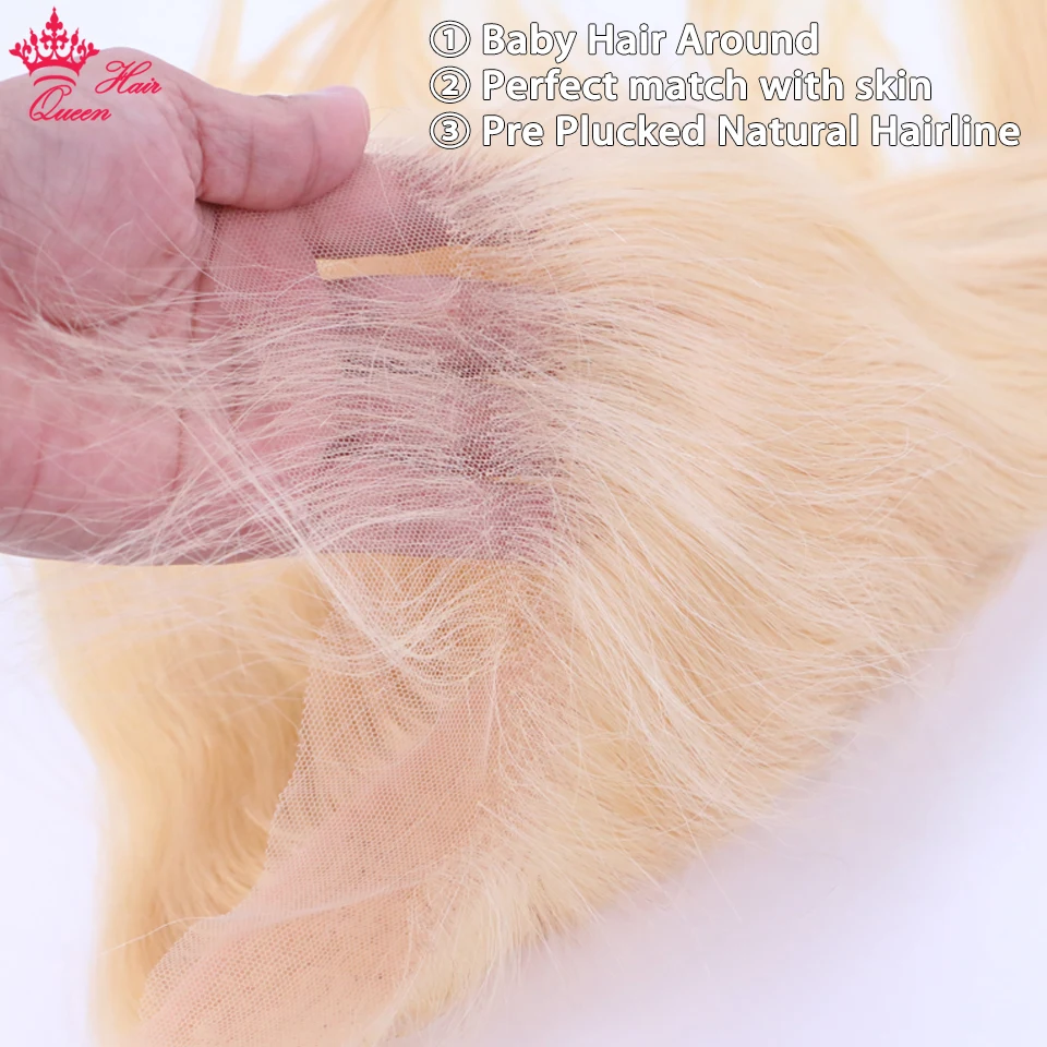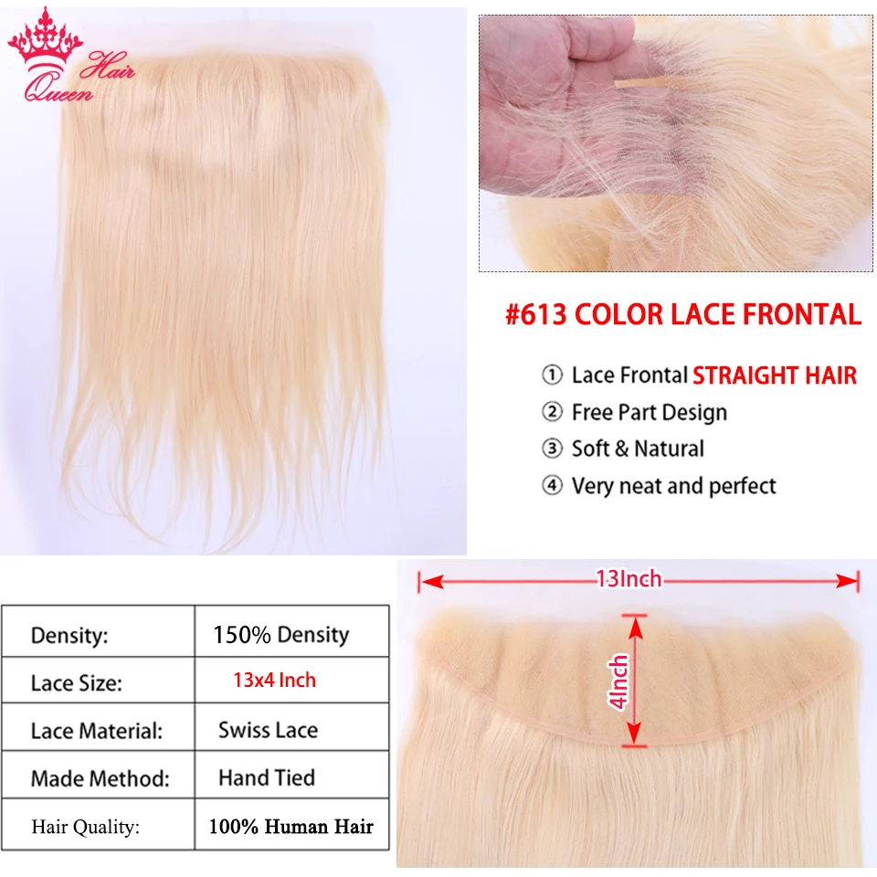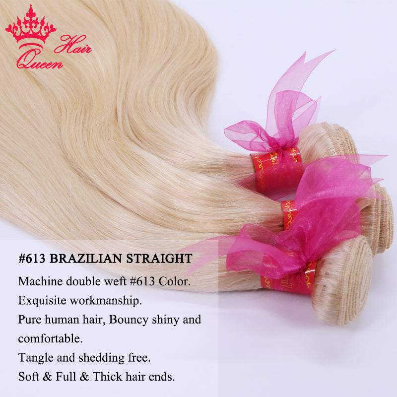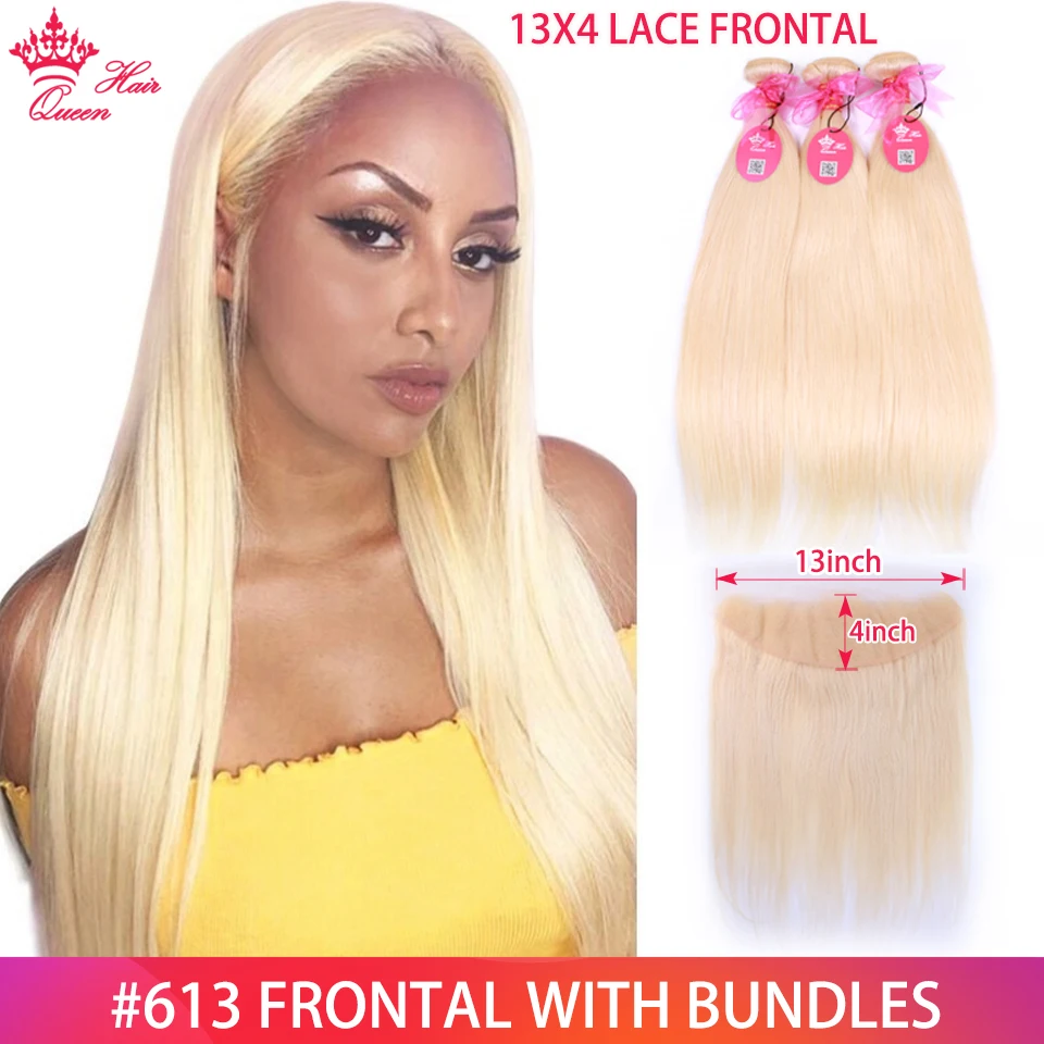 Queen Hair Brazilian Straight Blonde Human Hair Lace Frontal Closure with Bundles Human Hair 3 4 Bundles with Frontal 613 Color