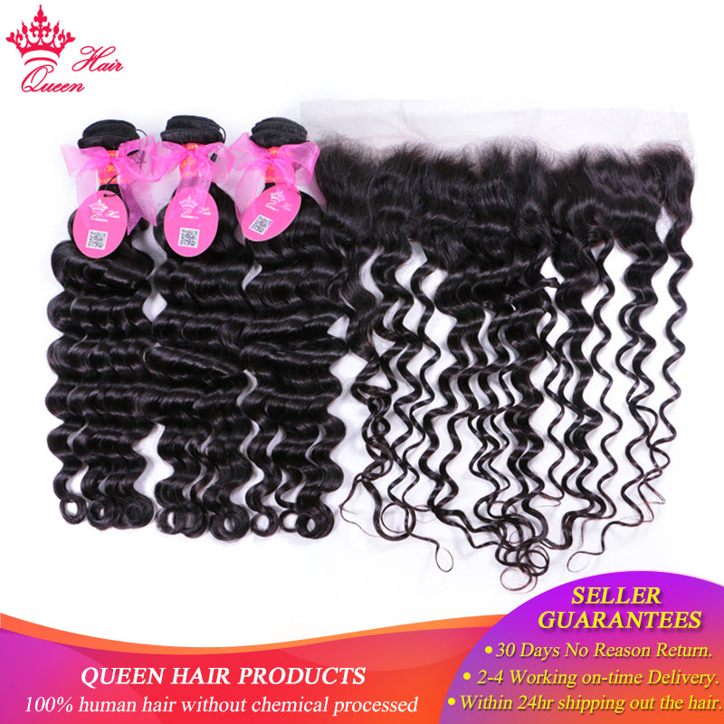 Queen Hair Official Store Lace Frontal With Bundles Brazilian Natural Wave More Wave Human Hair Bundles With Lace Closure Virgin