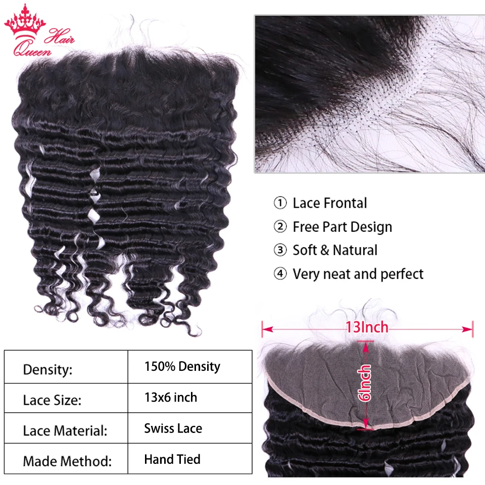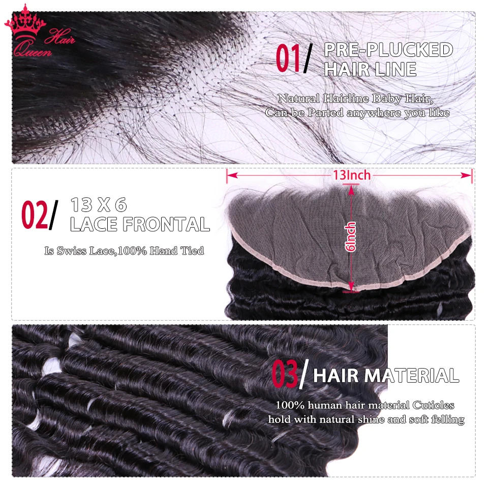 13x6 Frontal Deep Wave Bundles with Frontal Swiss Lace Frontal Closure Brazilian 100% Human Hair Bundles with Frontal Queen Hair