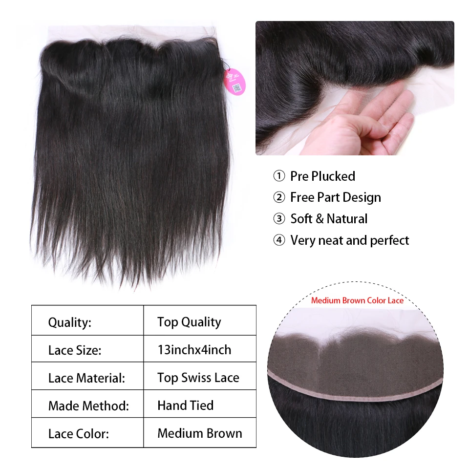 Queen Hair Brazilian Straight Hair Weave Bundles With Frontal Closure Virgin Human Hair Bundles with Lace Frontal Free Shipping