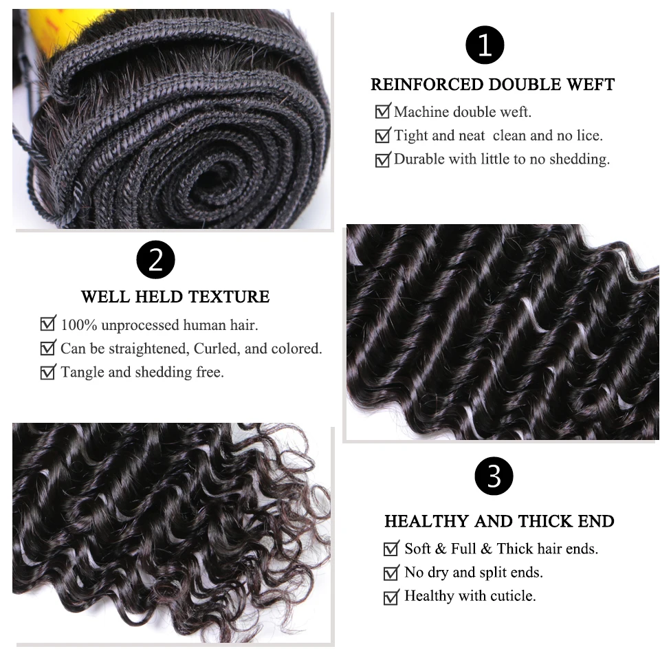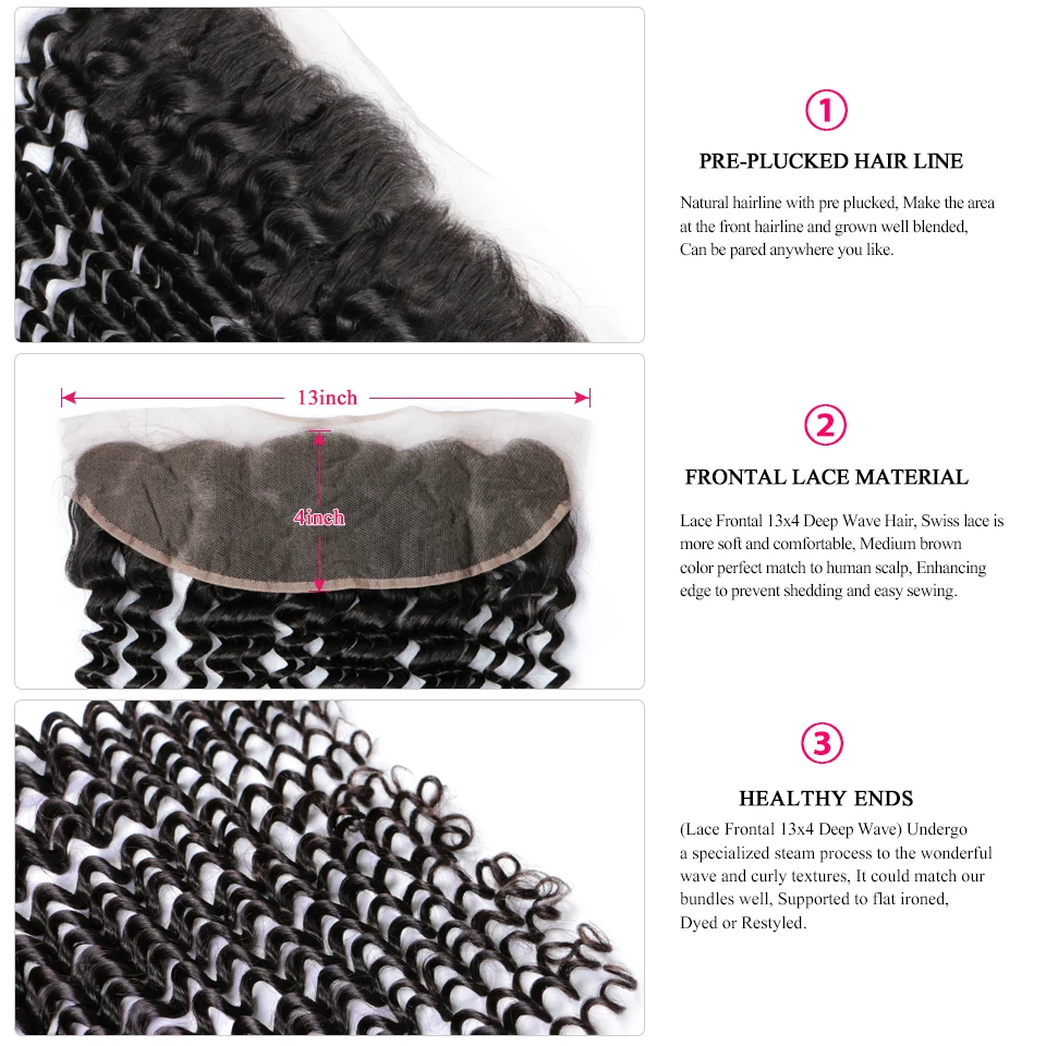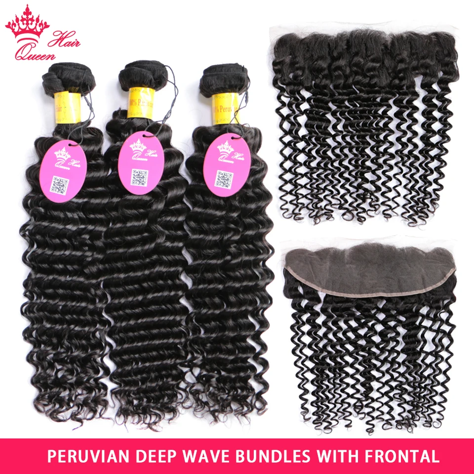 Queen Hair Peruvian Deep Wave 3 Bundles With Frontal Virgin Human Hair Weave Bundles 13x4 Lace Frontal With Bundles Free Part